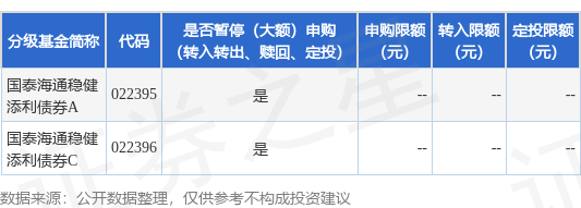 本站消息,11月14日上海国泰海通证券资产管理有限公司发布《国泰海通稳健添利债券型证券投资基金暂停大额申购(含定期定额投资)的公告》。公告中提示,为了保证基金的平稳运作,保护基金份额持有人利益,自2025年11月14日起国泰海通稳健添利债券型证券投资基金暂停大额申购(含定期定额投资),申购上限金额为100.0万元,下属分级基金调整明细如下: